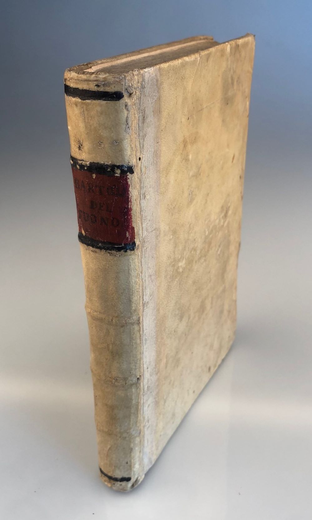 BARTOLI, D.: Del suono de'tremori armonici e dell'udito. Rom N. A. Tinassi 1679 8 Bl., 330 S., 1 Bl. Register (auf altem Papier faksimiliert). 5 Holzschnitt-Initialen, 21 Holzsschnitte im Text. Pergamentband der Zeit.