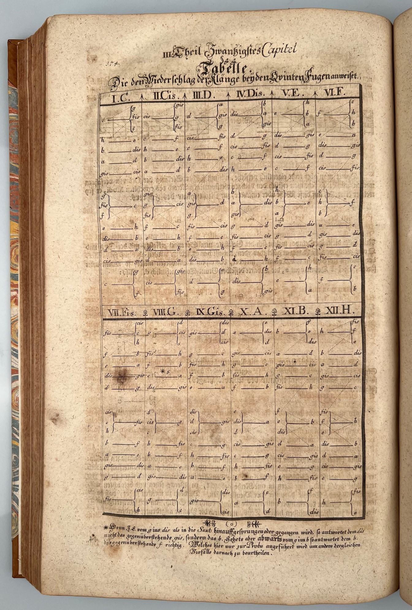 Mattheson's most important and extensive theoretical work, "an encyclopedia of the entire musical practice of his time", in the extremely rare original edition. The important matters from music theory and aesthetics, which are often dealt with quite briefly in the 3 "Orchestras", in the "Critica musica", in the two "Schools for basso continuo" as well as in the "Core of melodic science", are treated in such detail that this work must almost be called a fundamental one (Schmidt). Mattheson's works have become an indispensable source for musicology, because without them it is difficult to understand the great music-historical turn that took place in his time. Joseph Haydn owned a copy of it; Goethe knew it, as is evident from his letter to Zelter of Jan. 1, 1819. - Cannon No. 138; Wolffheim I, 819; Hirsch I, 378.