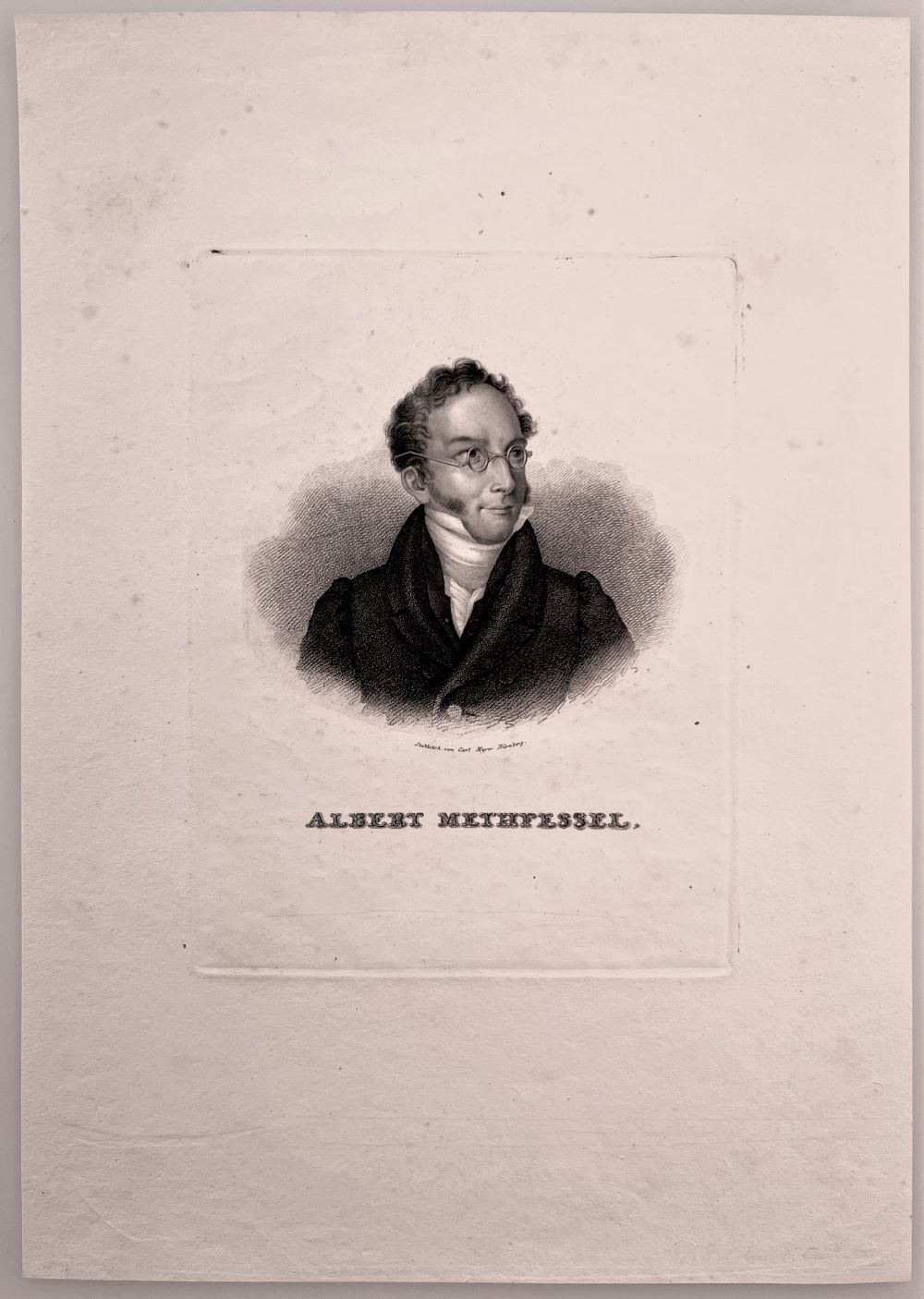 METHFESSEL, Albert Gottlieb. - Portrait, Porträt, Brustbild, Halbfigur nach rechts. Stahlstich von Carl Mayer. Nürnberg [ca. 1850] 17 x 12,5 cm. Schönes Exemplar mit breitem Rand.