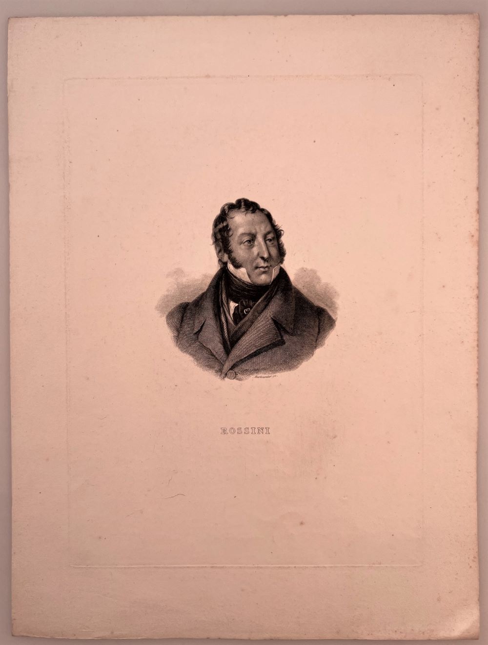 ROSSINI, Gioachiono. - Portrait. Porträt. Brustbild. Stahlstich von P. E. Bertonnier. [Paris vor 1848]. 25 x 18 cm. Schöner, breitrandiger Abzug.