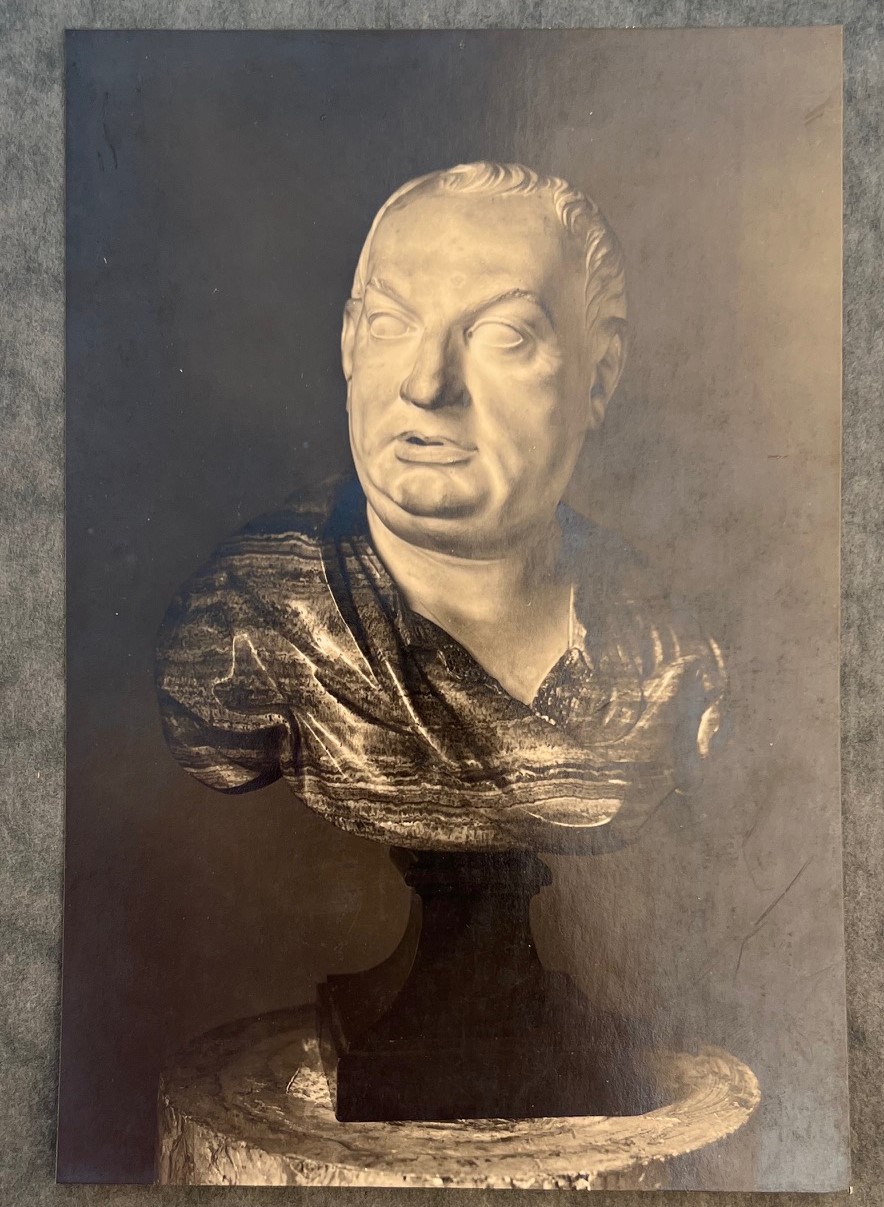 JOMELLI, Niccolo. - Photo, Portrait, Porträt, Halbfigur, Brustbild als Büste aus rotem und weißem Marmor auf einem Sockel stehend von P. J. Lejeune. Schwarz-weiß Fotografie. (Anfang des 20 Jhdts.) 17 x 11,5 cm