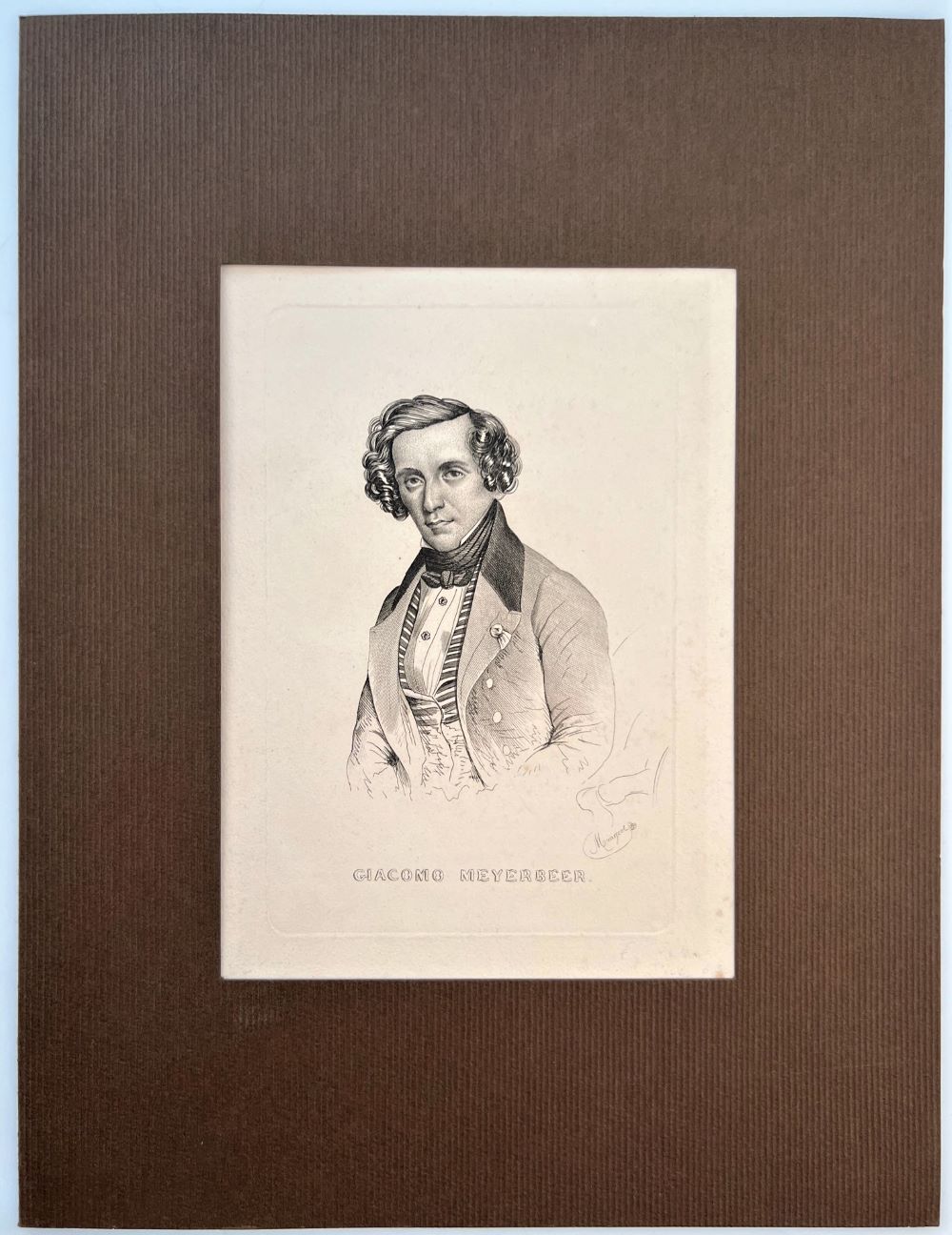 MEYERBEER, Giacomo. - Portrait, Porträt, Brustbild, Halbfigur. Stahlstich von [Jean-Joseph] Mougeot. [ca. 1836] 17,5 x 11,5 cm. Etwas stockfleckig.
