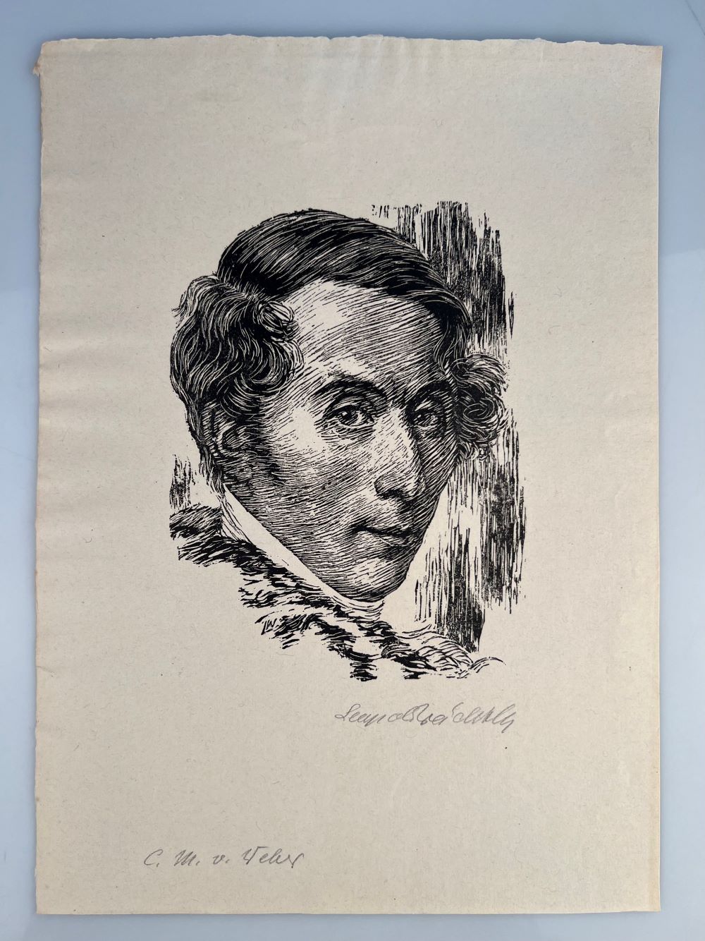 WEBER, Carl Maria von. - Portrait. Porträt. Originalholzschnitt von Leopold Wächtler. Handsigniert. [Leipzig M. Möhring ca. 1930] 34,5x24 cm