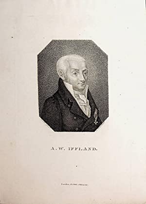 IFFLAND, August Wilhelm. - Portrait, Porträt, Brustbild nach rechts. (Oktagon). Kupferstich in Punktiermanier von E.Rauch nach [J. K.] Raabe Zwickau, Gebr. Schumann ca. 1820 17,2 x 11,5 cm.
