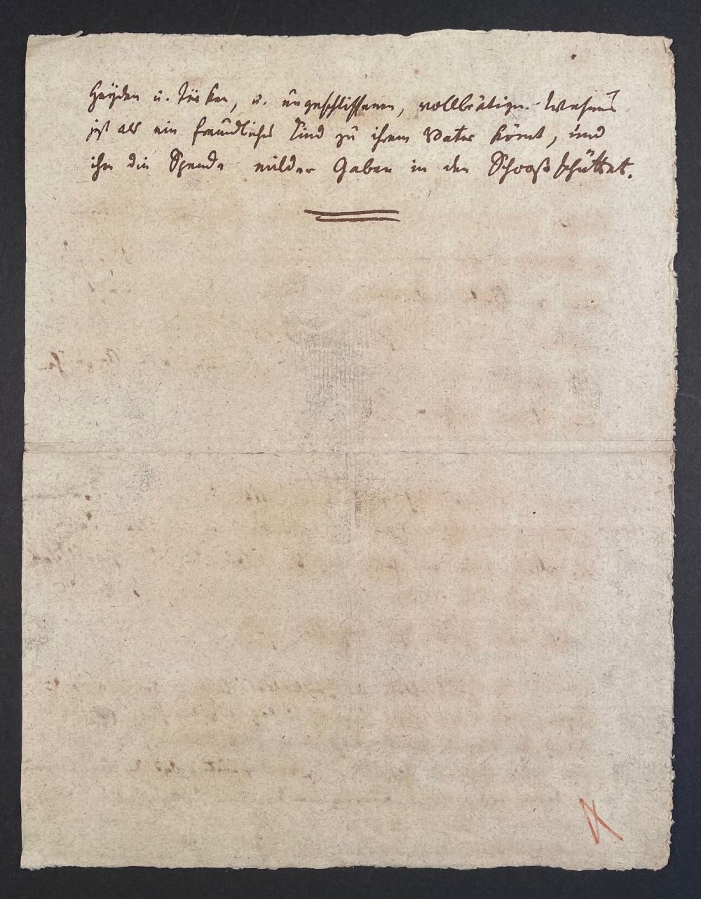 Bravo, das nenn ich gescheut gemahlt. Das ist ein Krämerszimmer wie es sich gehört, u. gebührt. Da ist alles drin, und alles, wie es seyn muss. Wenn dir die Gesellschaft nun auch das Stück selbst so hineinmahlt, so würd's nicht mit Geld zu bezahlen seyn." Am Rand die Anweisung für den Setzer "kleinerer Druck dieser Unterschrift". "Der Grenadier oder die Medaille" ist ein Singspiel in einem Akt vom damaligen Kapellmeister des k.k. Hoftheaters Michael Umlauf (1781-1842), das am 8. Juli 1812 in Wien uraufgeführt wurde. Das Libretto entstand nach einer wahren Anekdote von Josph Michael Babo.
