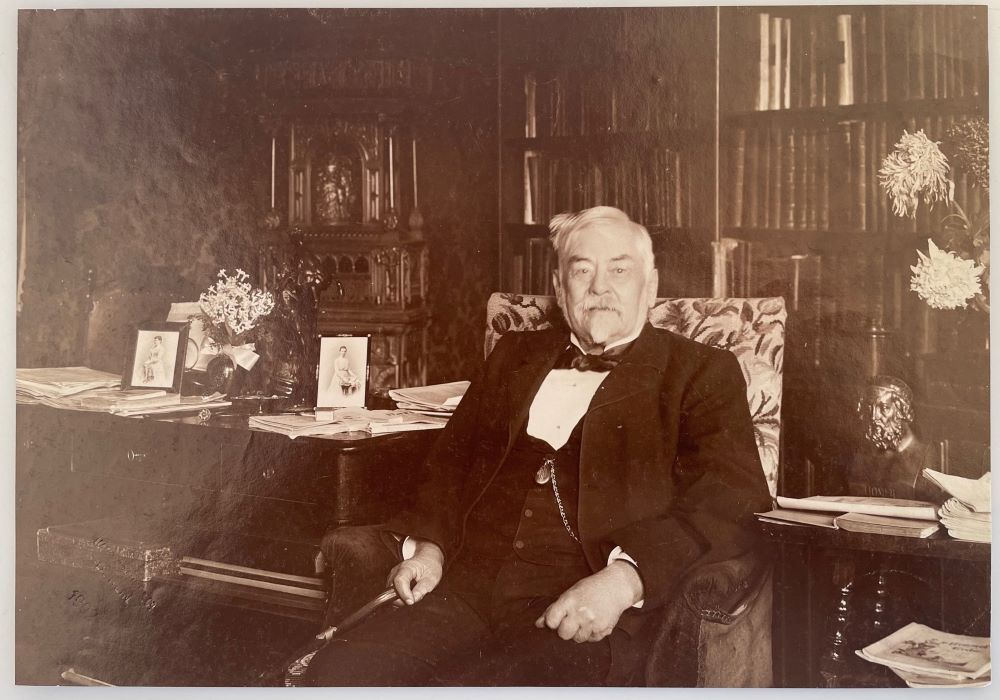 JORDAN, Wilhelm [1819-1904]: Fotografie. Mit eigenhändigem Namenszug auf beigefügtem Notizblatt. Frankfurt am Main 1902. 16 x 22 cm.
