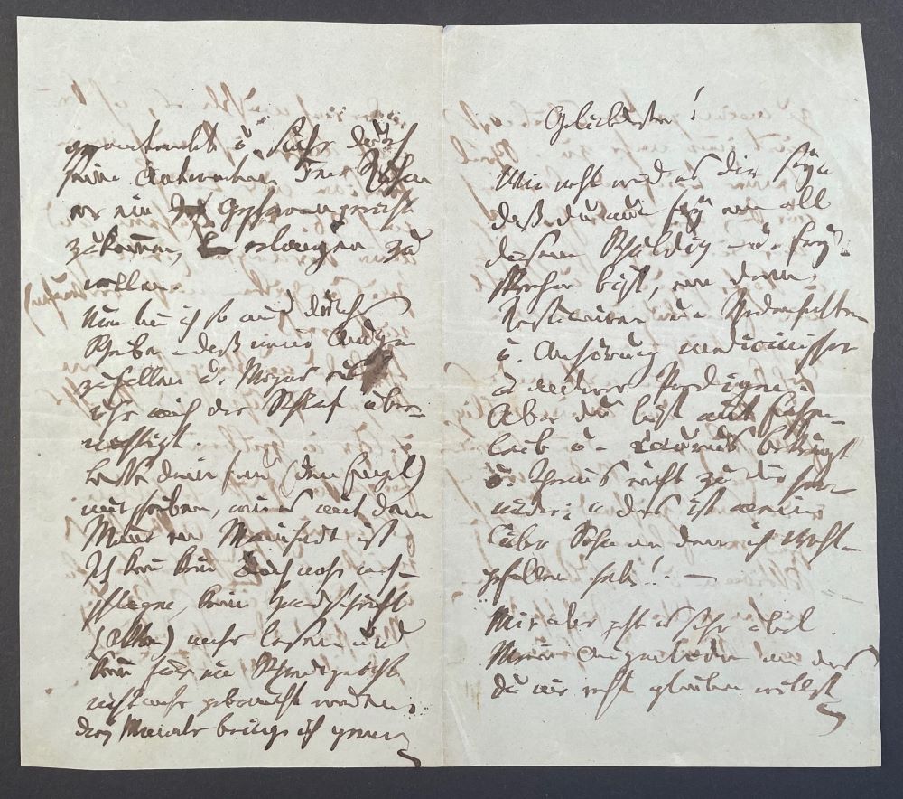Ich kann in Buch mehr aufschlagen, keine Handschrift (=Akten) mehr lesen und kann für ein Schwurgericht nicht mehr gebraucht werden. Die Monate bringe ich gern eingesperrt zu dann hab ich Ruhe u. kann nur pflegen. So eine medicinische Predig[t] zu halten - das wäre doch etwas für mich. Zu jener Zeit wo die Gerichte wieder sind muß ich ohne dieß ... eine Kur gebrauchten. Wenn du mein Freund bist so sorgst du hier für mich u. nimmst es für mich nicht wie du thatest auf der spöttischen u. lächerlichen Seite auf, es könnte dich selbst reuen...
