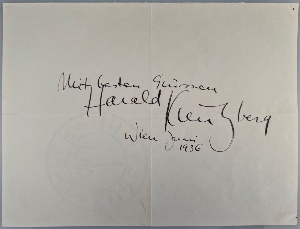 KREUTZBERG, Harald [1902-1968]: Eigenhändiges Albumblatt mit Ort, Datum und Unterschrift. - Autograph album leaf with place, date and signature. "Wien, Juni 1936". Octavo oblong 16 x 21cm. 1 page.