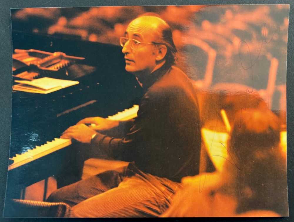 GULDA, Friedrich [1930-2000]: Farbige Porträt-Fotographie mit eigenhändiger Unterschrift auf der Bildseite. - Color portrait photograph with autograph signature on the image page. 12,5 x 17cm.