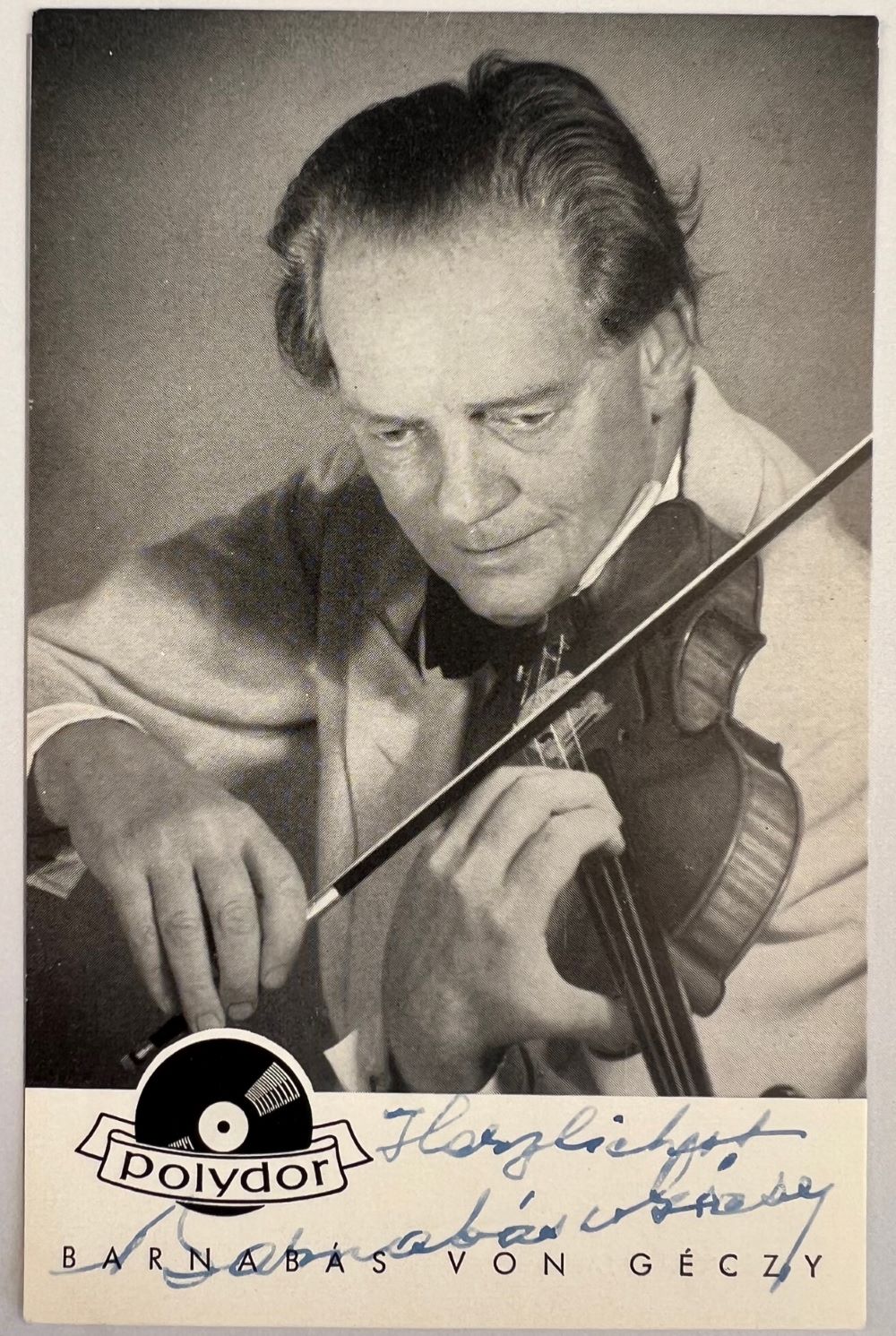 GÉCZY, Barnabas v. [1897-1971]: Porträtkarte mit eigenhändiger Unterschrift. - Portrait card with autograph signature. 14 x 9 cm, montiert auf grauem Karton - mounted on gray cardboard