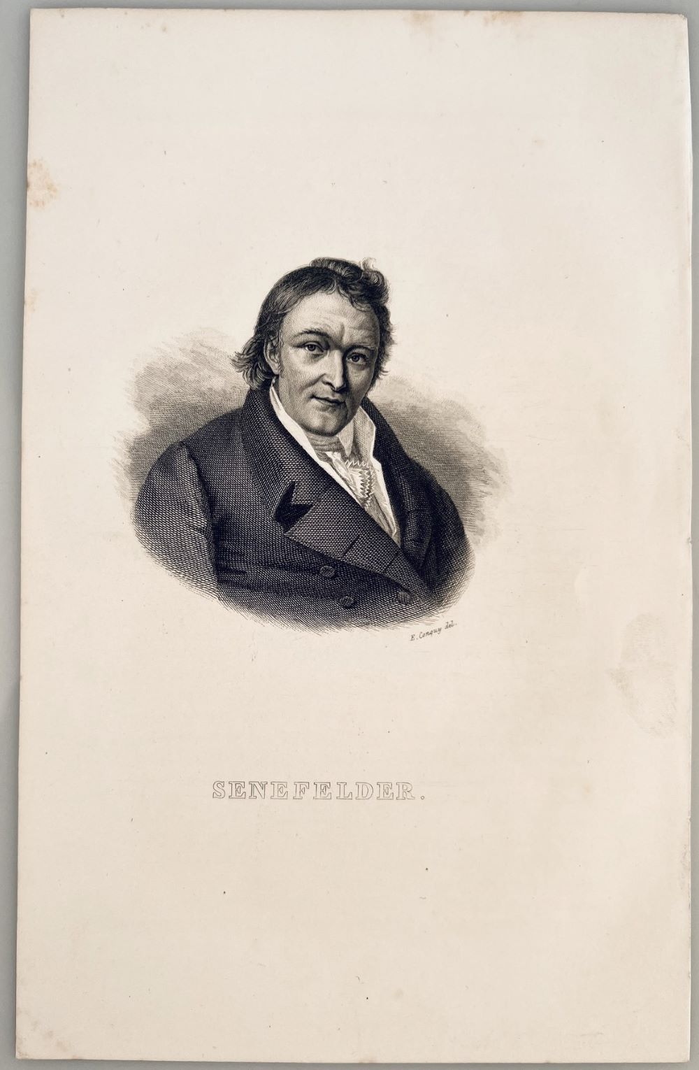 SENEFELDER, Alois: Portrait, Porträt, Brustbild nach rechts. Stahlstich von E. Conqiy. [um 1840] 22,7 x 14,5 cm