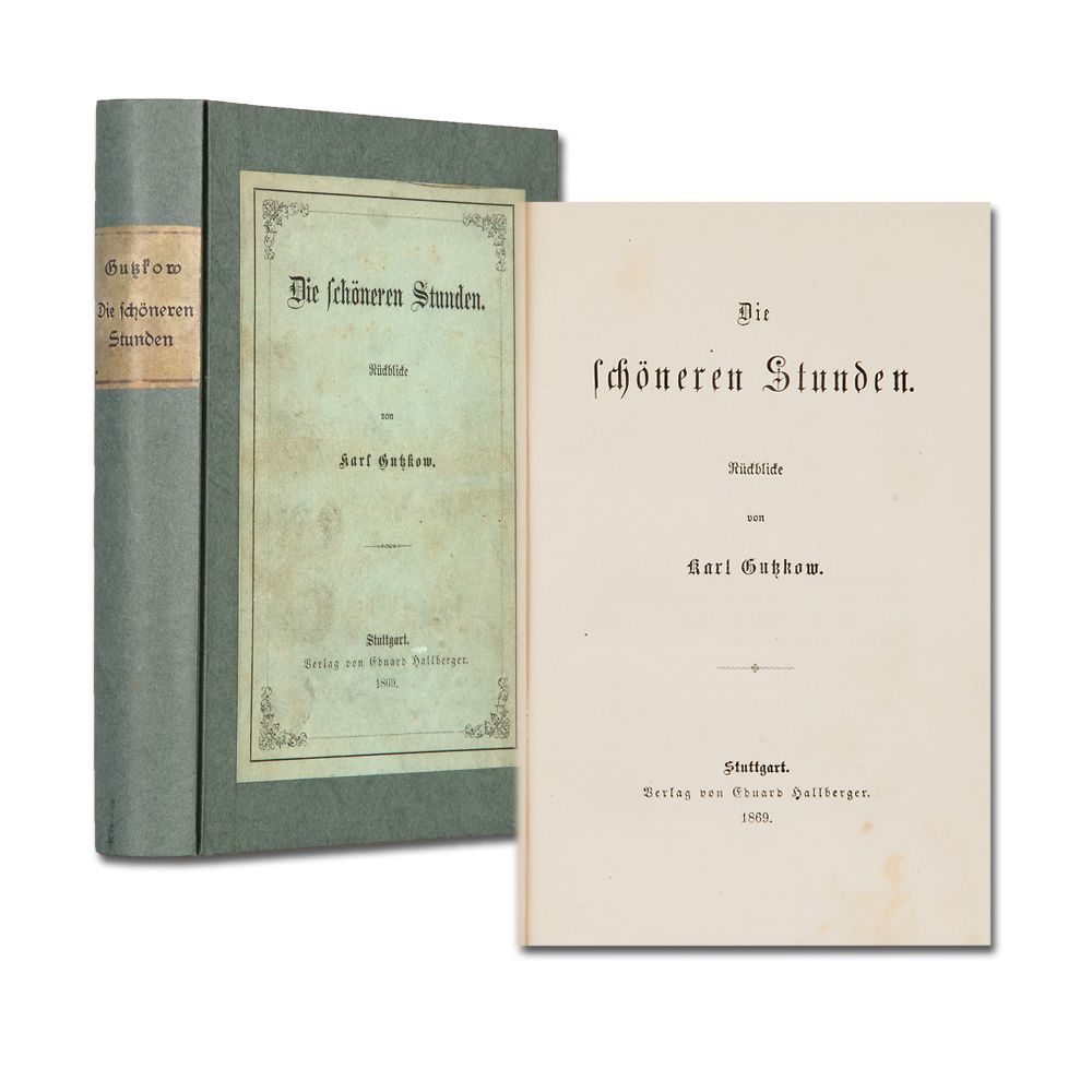 Erste Buchausgabe der Episoden und Erinnerungen an persönliche Begegnungen, die teils schon in Zeitungen erschienen waren. Gutzkows Novellen sind als lebendige Zeitdokumente von Interesse und stilistisch seinen übrigen Schriften überlegen. Besondere Beachtung kommt dem letzten Beitrag zu, der Gutzkows Erinnerungen aus der badischen Gefängniszeit wiedergibt und hier im Erstdruck vorliegt. "Er gewinnt in den Novellen ein inneres Verhältnis zur Form und zeigt ein beträchtliches Wachsen" (E. Alker). - Houben, Gutzkow-Funde, 553.
