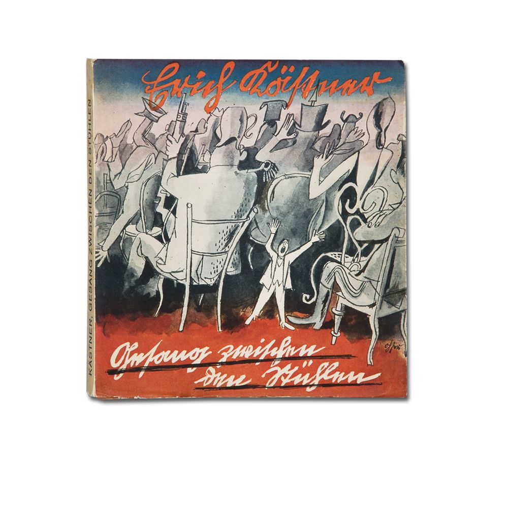 Erste Ausgabe des letzten Gedichtbandes vor 1933. Kästners lyrische Betrachtungen zum Niedergang der Weimarer Republik mit ihren politischen und menschlichen Idealen wurden von der zeitgenössischen Kritik als seine bis dato besten Gedichte gefeiert. Er behandelt neben dem Thema Politik auch die Bereiche Großstadt und Liebe. Rudolf Arnheim schreibt in der Wochenzeitschrift "Die Weltbühne": "Kästner beweist, dass er unbefangen, rechtlich und lachlustig wie ein Kind ist. Das kommt den Kindern, und das kommt seinen Gedichten zugute. Wenn er seinen Gesang zwischen den Stühlen anstimmt, so liegt das nicht an seiner Ungeschicklichkeit im Sitzen sondern an der seltsamen Konstruktion der Stühle. Er sucht einen Sitz. Schiller meinte, der sentimentale Dichter suche die verlorene Natur. Aber die Zukunft liegt nicht im Garten Eden. Wer heute zwischen den Stühlen sitzt, der sucht etwas, was zwar nicht Natur ist, wohl aber mit ihr eine wichtige Eigenschaft gemein hat: Sinn." - Wilpert/Gühring² 15; Hatry S. 97. - Siehe Abbildung.