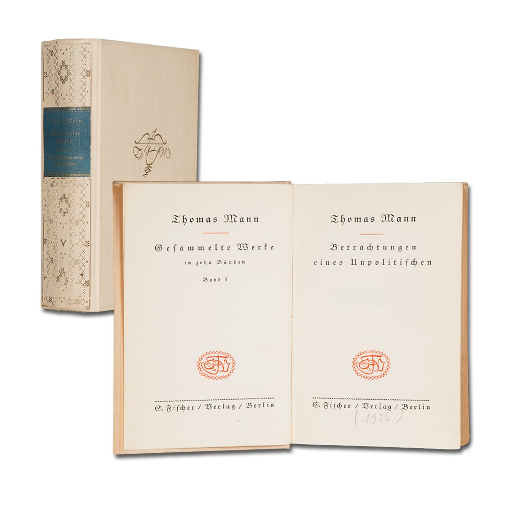 MANN, Th.: Betrachtungen eines Unpolitischen. Berlin S. Fischer (1925) XLVII, 630 S., 3 Bl. OLn.