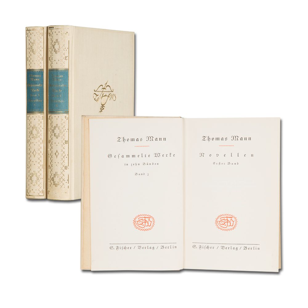 MANN, Th.: Novellen. 11.-15. Tsd. 2 Bde. Berlin S. Fischer (1925) 2 Bl., 373 S., 1 Bl.; 2 Bl., 451 S., 2 Bl. OLn. mit blauem, goldgepr. Rückenschild.