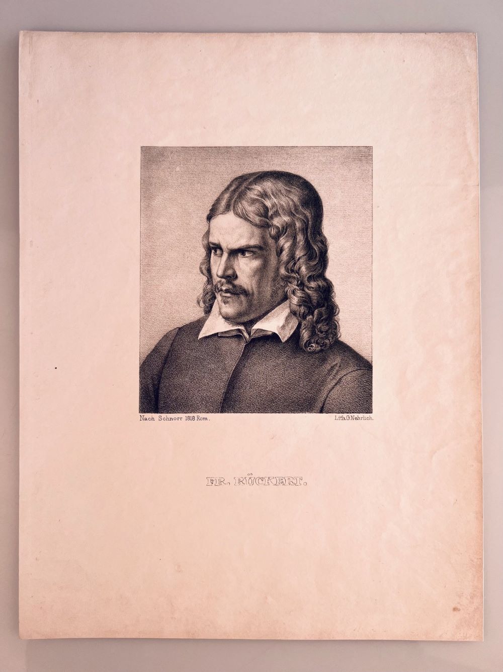 RÜCKERT, Friedrich. - Portrait, Porträt, Brustbild nach links. Lithographie von G. Nehrlich nach der 1818 entstandenen Zeichnung von J. Schnorr v. Carolsfeld. [ca. 1830] 28 x 21 cm