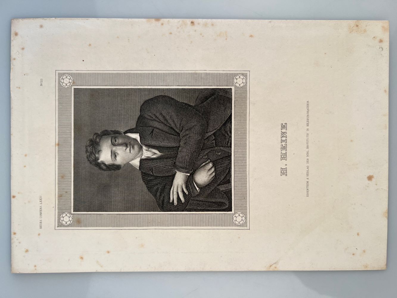 HEINE, Heinrich. - Portrait, Porträt, Brustbild, Halbfigur nach links. Stahlstich nach dem Gemälde von Moriz Oppenheim. Hildburghausen, Bibliographisches Institut [ca. 1870] 19 x 12,5 cm. Leicht stockfleckig.
