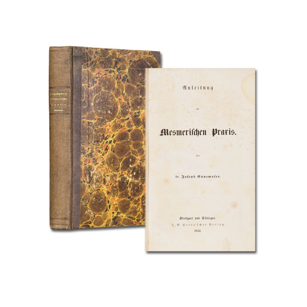 ENNEMOSER, J.: Anleitung zur Mesmerischen Praxis. Stuttgart und Tübingen Cotta 1852 S.[ III- ] VI, 514. Etwas fleckig. Ohne Vortitel. Halbleinenband der Zeit.