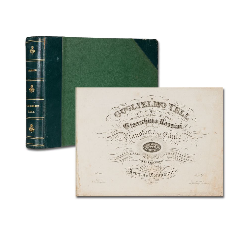 ROSSINI, G.: Guglielmo Tell. Opera in quattro Atti. Ridotta per Pianoforte con Canto. Wien Artaria (PlattenNr. 3001, auch 3000) [1829/1830] Quer-Quart. 2 Bl., 363 S. ital./dt. Text. Halblederband.