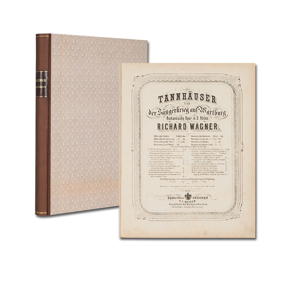 WAGNER, R.: Tannhäuser und der Sängerkrieg auf Wartburg. Romantische Oper in 3 Akten. Vollständiger Klavierauszug [vom Komponisten]. [WWV 70]. Berlin und Dresden Meser (VerlagsNr. 325) [1872]. Folio. 1 Bl., 273 S., papierbedingt gebräunt. Etwas flacher Abzug. Halbleinenband im Stil der Zeit.