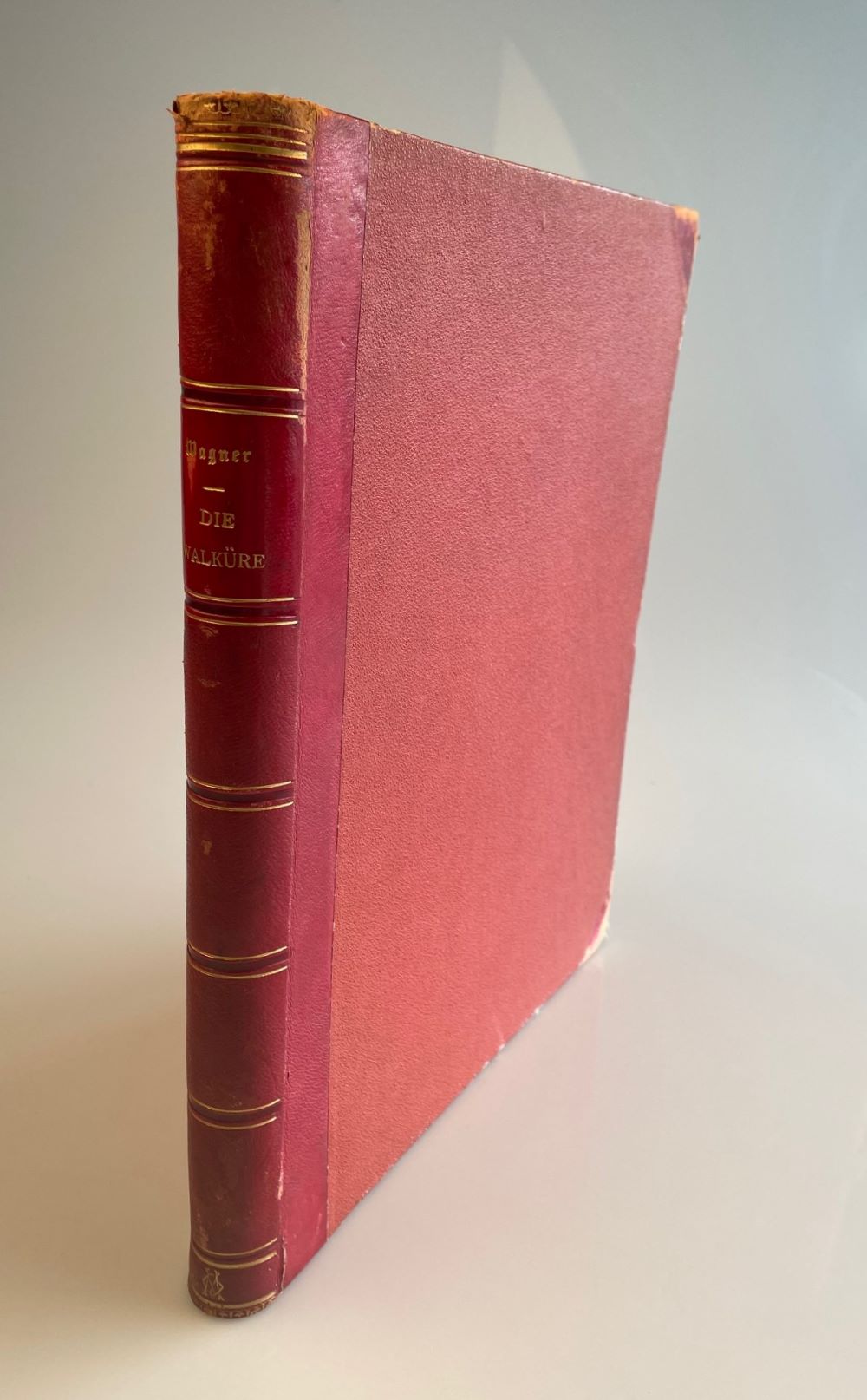WAGNER, R.: Die Walküre. Vollständiger Klavierauszug von Karl Klindworth. Mainz B. Schott's Söhne (PlattenNr. 17995) [1865] Folio. 2 Bl., 274 S., unterschiedlich stockfleckig. 22/12 Halblederband der Zeit. Ecken bestoßen.