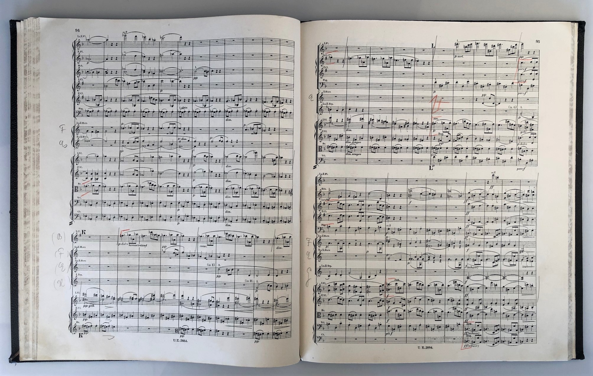 Titelauflage der Partitur. - Arbeitsexemplar des Dirigenten Robert Heger, mit dessen eigenhändigen Namenszug, sowie durchgehend mit seinen handschriftlichen Eintragungen.